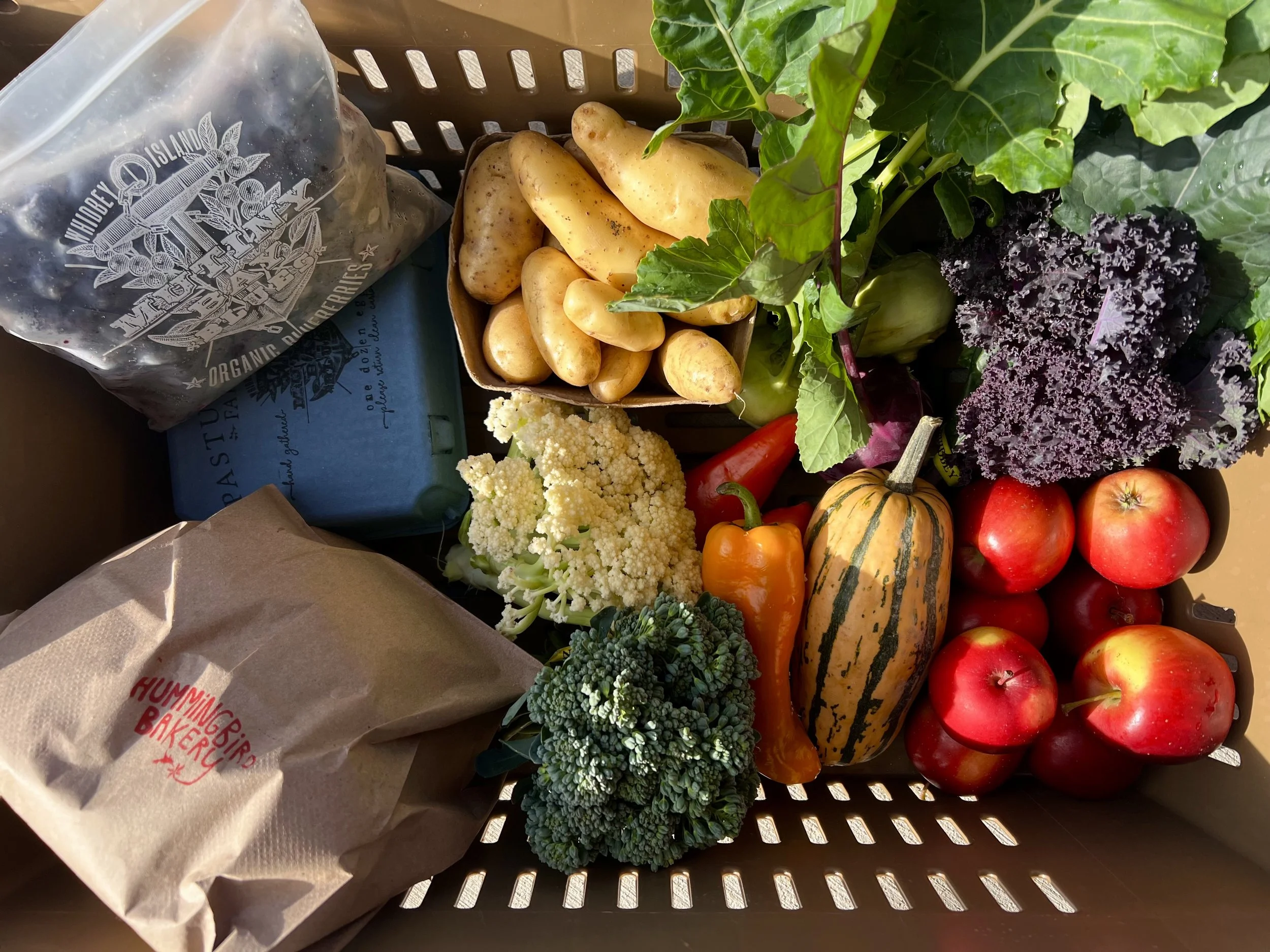 Eat with the seasons, reduce your carbon footprint!, enjoy unmatched freshness and nutrient density! All this, and you fill our farm’s reserve tank at the most input heavy time of year. We view Farm Share programs as one of the most effective ways to stand in solidarity with small-scale farmers. What’s more, for every investment made in our pre-pay farm share program, we will donate a percentage of produce to Whidbey Island Nourishes, a non-profit organization which delivers food directly to over 200 local children experiencing food insecurity.